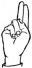 На ћирилици написано АЛЕКСА БОЛУНОВИЋ састоји се из 15 слова [?]. Исписано ћириличном једноручном азбуком за глувонеме:
